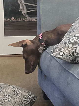Buckley and his sister Sammy have become quite the duo running laps and playing nonstop in the yard. Sammy likes to sleep in random positions, as you can see in the pictures below.
